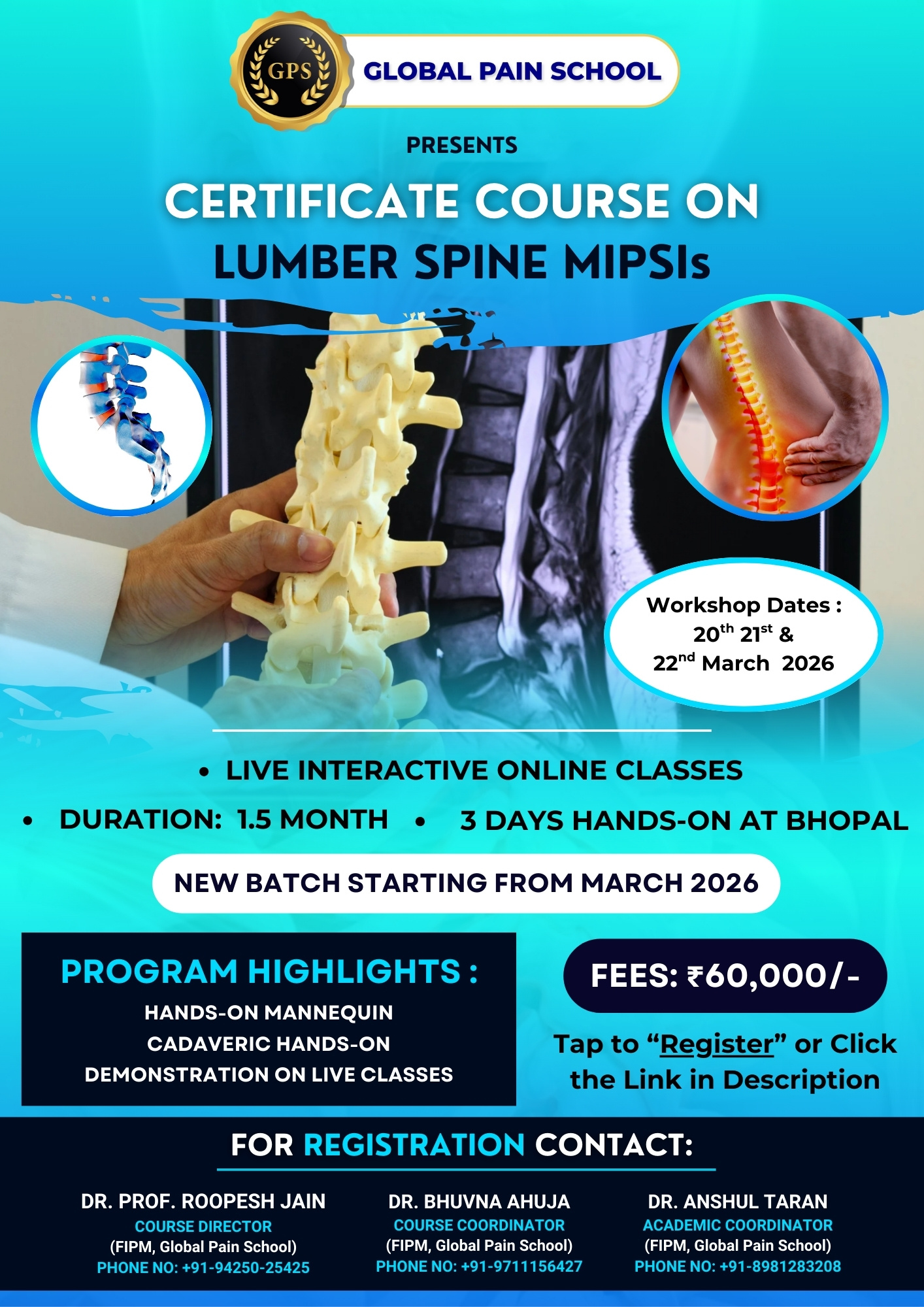 Global Pain School offers specially designed courses by masters in pain medicine for budding pain physicians.